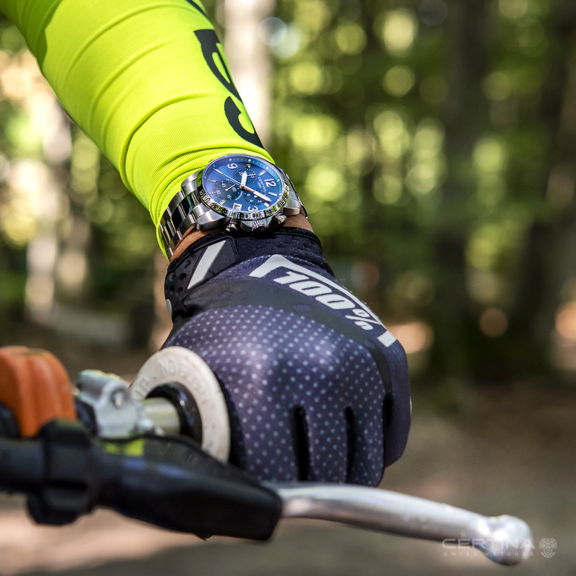 Super-LumiNova® (SLN) is a luminescent material with phosphorescent properties. In the dark, the SLN type BG W9 used by Certina emits the light stored as a blue shimmer. SLN does not damage your health in any way and is used in coatings on hands, indices and bezels. It progressively loses its phosphorescence in darkness, but automatically regains it under light.