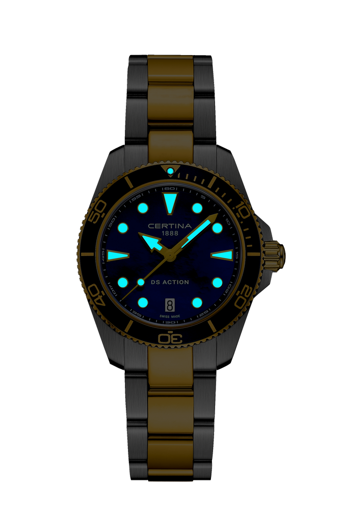 Super-LumiNova® (SLN) 是一种含磷成分的发光材料。在黑暗中,雪铁纳采用的BG W9 型 SLN 材料能够释放其所储存的能量,发出微微的蓝光。SLN 不会对人体带来任何伤害,通常被用在指针、时标和表圈的涂层。夜光会在黑暗中逐渐暗淡,一旦遇到光线即可重新储存能量。