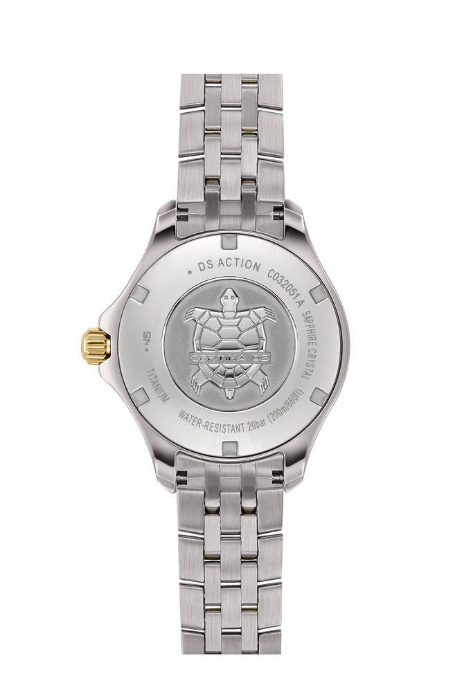 钛金属不仅坚固耐用、具有低致敏性和抗腐蚀性,而且质地极轻——重量几乎仅有不锈钢的一半。这就是雪铁纳特别选用钛金属来生产部分佩戴舒适的表壳、表链和表扣的原因。